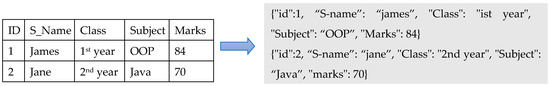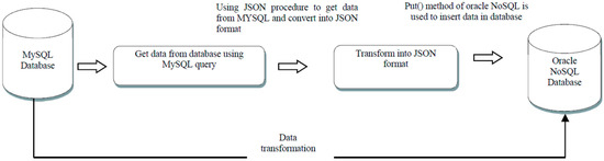 For data transformation, a table in source MySQL database is selected from which the data is to be extracted and transformed into JSON format for final storage in an oracle NoSQL database. For this purpose, the ETL (Extract, Transform and Load) methodology [31] is used. The data transformation module is shown in Figure 9.