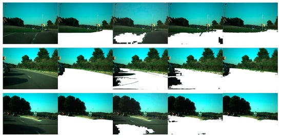 The experimental image set uses the common dataset, CVC [21], which contains a large number of road video image sequences. The sequence is acquired by an onboard camera based on the Sony ICX084 sensor. The camera is equipped with a microlens with a focal length of 6 mm and an image frame acquisition rate of 15 fps.