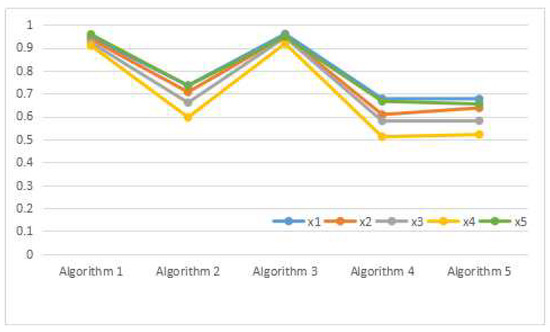 Then, Algorithm 2 can be used for Example 10. Let be the evaluation information of on in Table 1. That is to say, Table 1 is the SVN decision matrix D. We suppose the weight vector of the criteria is and .