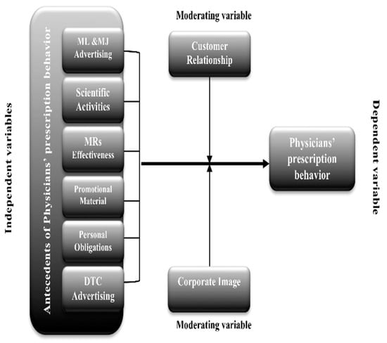 This research study has a unique academic perspective, which is relevant in offering comprehensive insight regarding the influential factors for the symmetry of physicians’ prescription behavior within the context of Pakistani Pharmaceutical industry. The undertaken study examines the existing and novel factors that may influence the physicians’ symmetrical prescription behavior. This research will examine a comprehensive analysis of exogenous, moderating factors on the physicians’ symmetrical prescription behavior. In this research, besides marketing factors, we have also included medical factors that could be important for reshaping the symmetry of physicians’ behavior. Finally, the undertaken study is unique in nature because it examines the effects of moderating variables such as corporate image and customer relationships in an association of medical & marketing factors, and the symmetry in physicians’ prescription behavior [,,]. Thus, the undertaken study could be a significant addition to the current literature regarding pharmaceutical marketing and physicians’ behavior. Moreover, this research may also set a new horizon for future research studies, and provide the foundation for forthcoming literature regarding antecedents of physicians’ symmetrical prescription behavior.