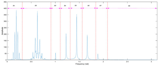 The spectrum of signals is reached by Fourier transform. Then, according to EWT theory, its spectrum is divided, and eight bands are obtained. As shown in Figure 2.