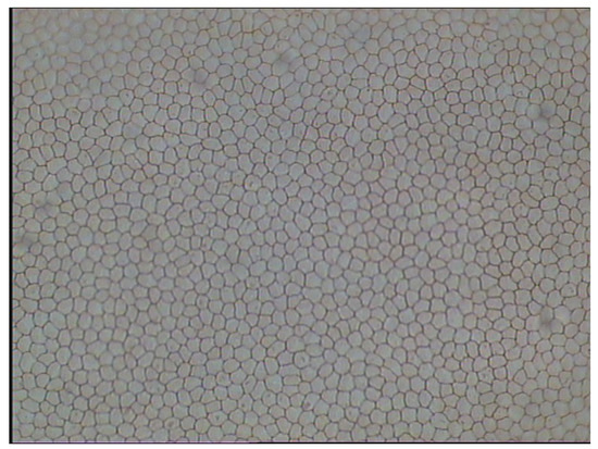 A dataset Endothelial Cell “Alizarine” [32] presents the images of corneal endothelium taken from porcine eyes stained with alizarine (see Figure 1). It was used in experiments because the cell shapes and photograph characteristics are similar to one of the humans. The monochromatic images, which resolution is were acquired by inverse phase contrast microscope (Chroma Technology Corp, CK 40, Windham, VT, USA) with 200× magnification and photographed with an analog camera (Sony, SSCDC50AP, Tokyo, Japan). The images are accompanied by manually drawn segmentation. The cell boundaries are denoted by regions of good image contrast (close to the focus), while the blurred regions on the edges are left without annotation. In consequence up to a quarter of each from 30 images is annotated. There are 232 cells detected in average (ranging from 188 to 388) with the average cell area of 272.76 pixels. This dataset is available at http://bioimlab.dei.unipd.it.