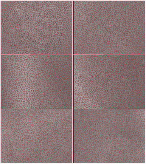 - Vincent, L.M.; Masters, B.R. Morphological image processing and network analysis of cornea endothelial cell images. In Proceedings of the International Society for Optics and Photonics, San Diego, CA, USA, 1 June 1992; Volume 1769, pp. 212–226. [Google Scholar]