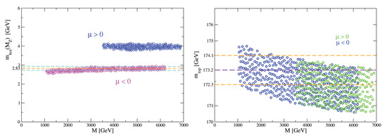 - Buchmueller, O.; Dolan, M.J.; Ellis, J.; Hahn, T.; Heinemeyer, S.; Hollik, W.; Marrouche, J.; Olive, K.A.; Rzehak, H.; de Vries, K.J.; et al. Implications of Improved Higgs Mass Calculations for Supersymmetric Models. Eur. Phys. J. C 2014, 74, 2809. [Google Scholar] [CrossRef] [PubMed]