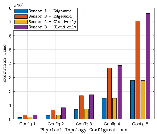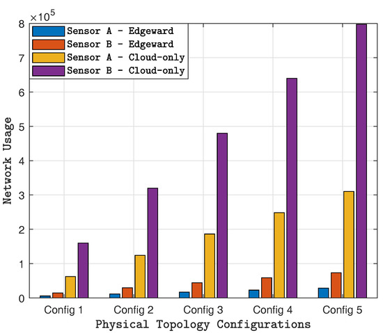 Moreover, five configurations of physical topology have been simulated - Config 1, Config 2, Config 3, Config 4, and Config 5—having 100, 200, 300, 400 and 500 sensors respectively. The transmission interval of Sensor A and B is and , respectively. The control loop is .