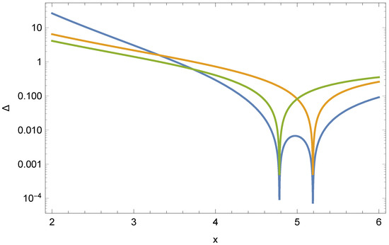 In [20], we mostly considered the electric case where , but we did remark that interesting cancellations occur if . Here we will explore this further and define . This leads to the following form for the quantities in the logarithm:
