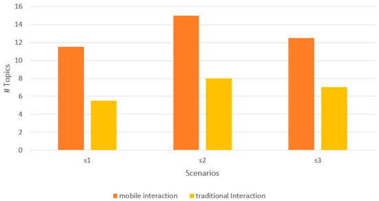 In the three scenarios, mobile interaction groups talked about more topics than the traditional group interactions (Figure 7).