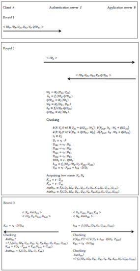 - Xiong, H.; Chen, Z.; Li, F. New identity-based three-party authenticated key agreement protocol with provable security. JNCA 2013, 36, 927–932. [Google Scholar] [CrossRef]