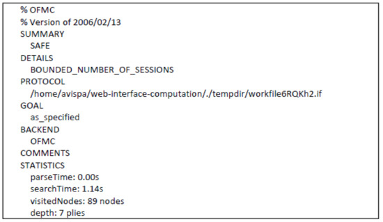 Simulation result of the proposed protocol on On-the-fly Model-Checker (OFMC) model checker.