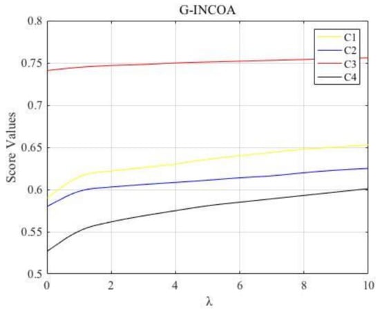 The changing trends of decision results with calculated by the G-INCOA operator.