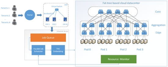 - Yu, L.; Shen, H.; Cai, Z.; Liu, L.; Pu, C. Towards Bandwidth Guarantee for Virtual Clusters under Demand Uncertainty in Multi-tenant Clouds. IEEE Trans. Parallel Distrib. Syst. 2018, 29, 450–465. [Google Scholar] [CrossRef]