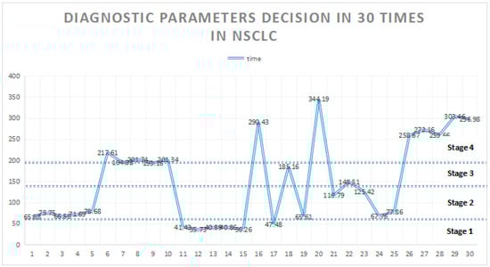 Diagnostic parameters decision in 30 time points in NSCLC.