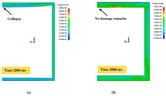 On the other hand, Fallan and Louca [] simplified the structure to an equivalent elastic-perfect plastic SDOF model. This model defined the damage levels according to the maximum deflection of structure (yc). Thus, various damage levels were suggested corresponding to the value of yc, which is set to be the mid-height lateral displacement of the structural member to reduce uncertainties in predicting the critical deflections, as shown in Table 2. This damage criterion was used by Mussa et al. [] in order to assess the damage level of a box-shaped tunnel.