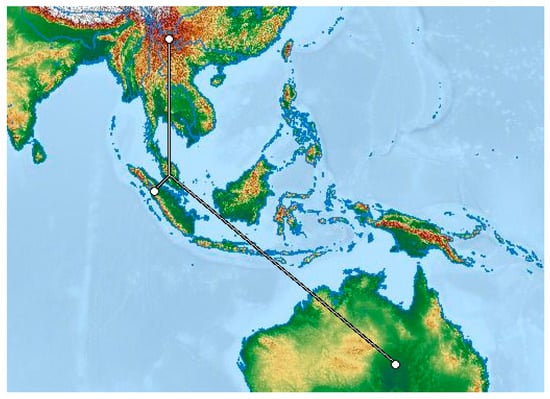 The illustration of the servers’ relative positions using a public domain map, for Scenario 3.1.