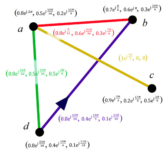 - For each vertex: , , are called the complex truth, indeterminate, and falsity membership values, respectively, of the vertex . Moreover, if = = = 0, then is said to be a void vertex.