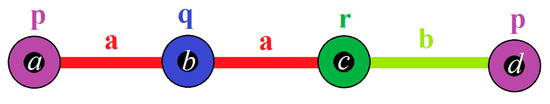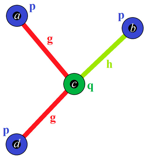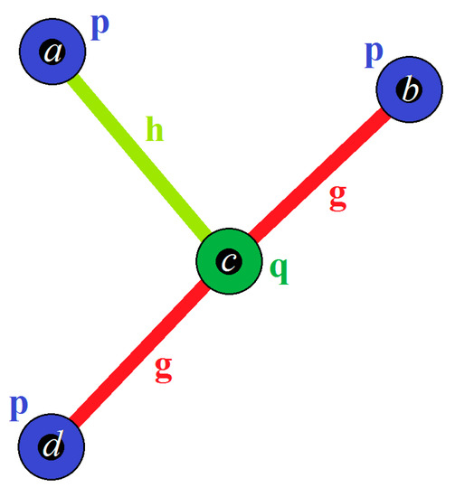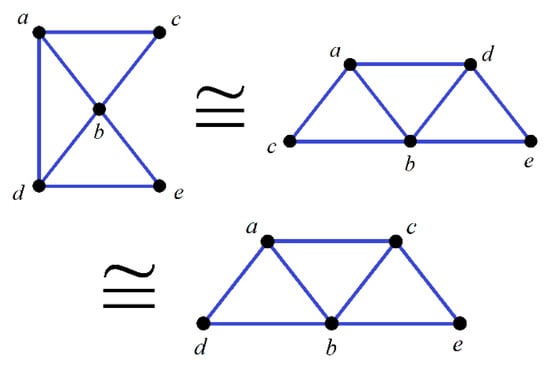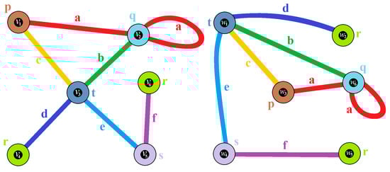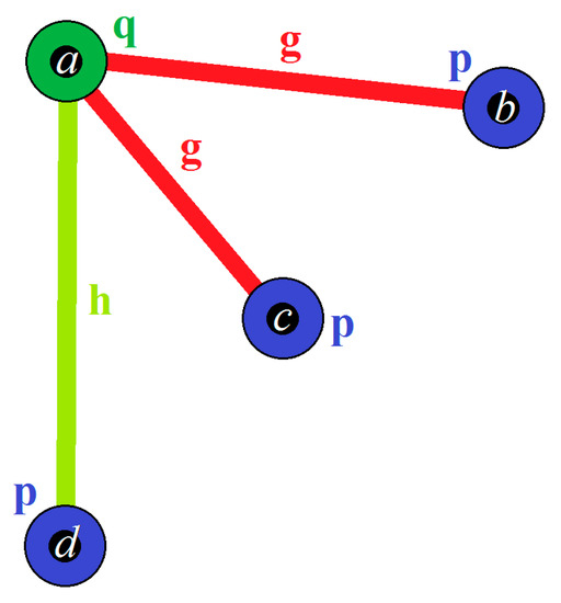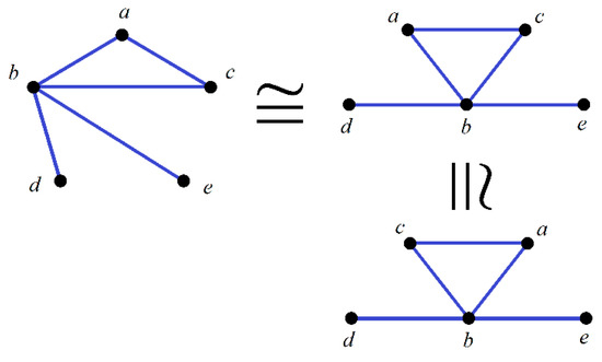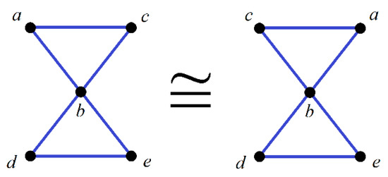 In this case, as non-void vertices having different membership values, only one automorphism of , which is the identity mapping where for all . As , is, thus, point-wise asymmetric (PA). It is, nonetheless, weak edge-wise symmetric (wES).