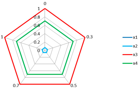 In the same way, the relative closeness degrees of the four early gastric cancer surgical treatments x1, x2, x3, and x4 with respect to the PIS for expert are calculated, respectively, as follows: