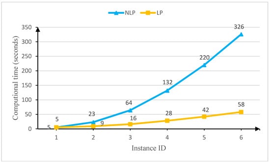 Figure 3 shows that the increment in problem size leads to significantly longer computational time, especially for the NLP. The time consumed for the nonlinear model increases exponentially with the expansion of the problem scale, while the proposed linear model increases slowly. It is speculated that linear model has a higher computational efficiency.