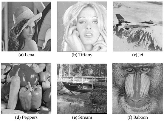 In this section, we conduct several experiments and compare the results with some other state-of-the-art works to evaluate the performance of the proposed method. Six grayscale images shown in Figure 5, including Lena, Tiffany, Jet, Peppers, Stream, and Baboon, were used as the test images to generate the AMBTC codes. These images can be obtained from [24].