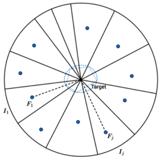 Assume that the current coverage angle is , and takes a given set of point sets within the set F. For each point, this paper compares the two utility strategies.