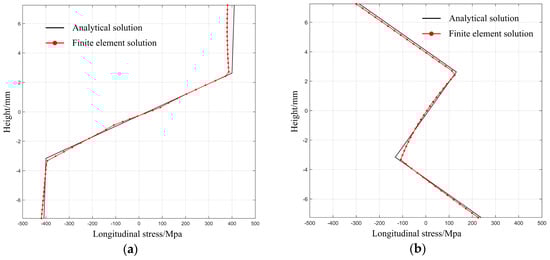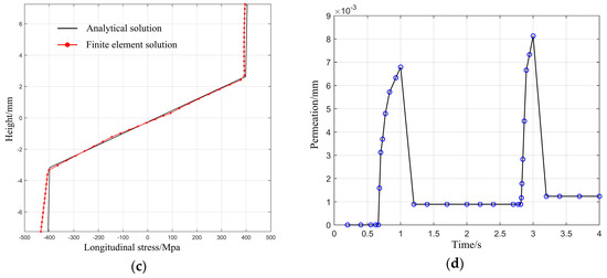 If the reverse bending occurs in the first straightening process, the direction of the second loading stress is opposite to the moment of the first loading process. According to Equations (11) and (16), the distribution function of the second loading stress can be expressed as