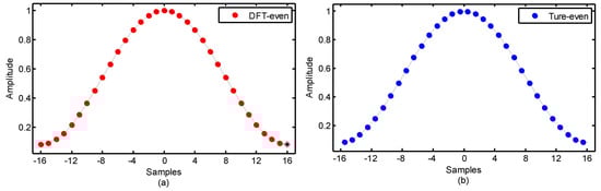 (a) DFT-even Hamming window; (b) True-even Hamming window.