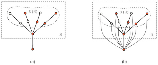 (a) a graph G and its subgraph H such that all vertices of are non-adjacent to all vertices of ; (b) a graph G and its subgraph H such that all vertices of are adjacent to all vertices of .