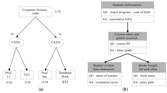 An example for hierarchical data: (a) A student’s record; (b) Schema for education data.