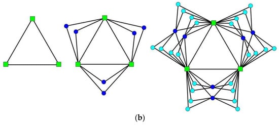 - Zhang, Z.; Rong, L.; Guo, C. A deterministic small-world network created by edge iterations. Phys. A Stat. Mech. Appl. 2006, 363, 567–572. [Google Scholar] [CrossRef]