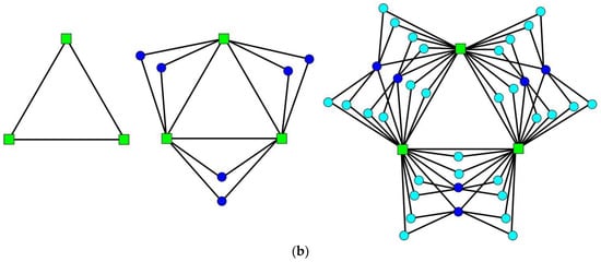 - For,is constructed fromby addingnew vertices to every edge linked at stepand three initial edges added at, then linking thenew vertices to the two end vertices (see Figure 4).