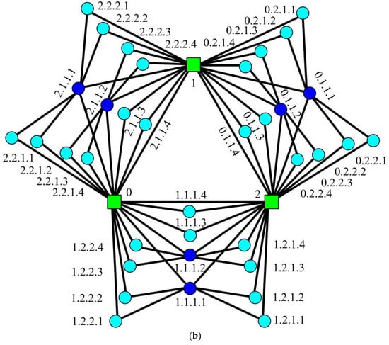 - Comellas, F.; Ozon, J.; Peters, J.G. Deterministic small-world communication networks. Inf. Process. Lett. 2000, 76, 83–90. [Google Scholar] [CrossRef]
