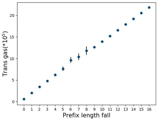 We are faced with a difficult problem to accelerate further the processing of our setup phase. The resource transaction needs to be reproduced in chronological order. For example, an IP prefix has to be registered by IANA and allocated to ARIN firstly, and then, ARIN delegates to Brazil. Therefore, these transactions with the inter-dependence and a strict chronological order lead to the less concurrency of the setup phase of BGPcoin. In our analysis, this is the other reason why the reproducing took such a long time. However, if we sent one transaction after the time the previous transaction had been confirmed, it would contain only one transaction in a block since the confirm unit on the blockchain is one block. Therefore, we still try to send 10–30 transactions at one time to ensure the current block to assemble as much transactions within the block limit. The transactions that have not been recorded in the current block wait to be confirmed in the next block. Moreover, we periodically collect the failed transactions that may have inconsistency and conflict with the current state of the traded resource and resend them later. We notice the current gas limit of the real Ethereum has become 7,992,222 gases, which increases 70% the gas limit at the time when we performed the BGPcoin experiment. Every block has a larger capacity to contain more transactions if we reperform the experiment now.