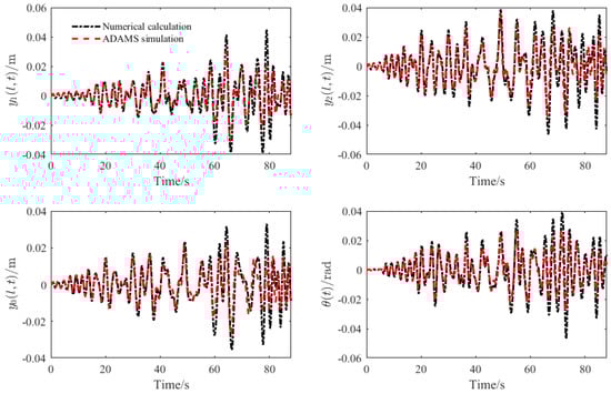 (4) The control performance achieved with the proposed control is verified by both the ADAMS simulation and numerical calculation in different cases. The parameter estimations quickly converge to actual values with the adaption laws.