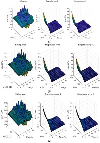 It is easily seen that the position of the sinking platform and the undesired vibration of the suspension rope can be diminished to an arbitrarily small value, when appropriately increasing the control gainsatisfies the inequalities in Appendix B. However, the large control gain would also cause the high gain problem, even making the system unstable.