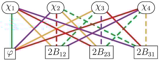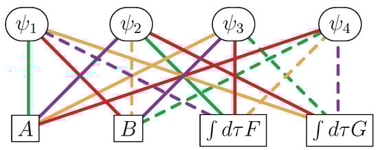 Therefore, when all of the bosons and fermions in Equations (89)–(92) are expressed in terms of real quartets of functions as in (98)–(101) and the Majorana supercovariant derivative in (96) is used, they universally possess SUSY transformation laws in the form: