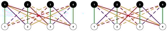 5.5. 2D, = (4, 0) Adinkra-Related Matrices and Gadget Values