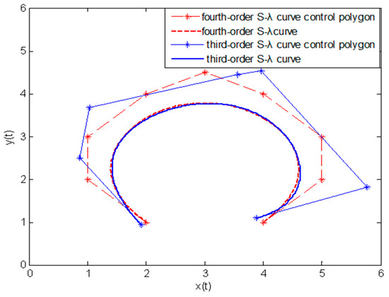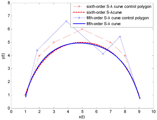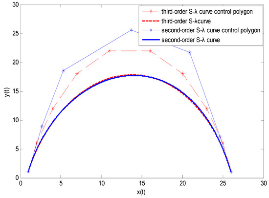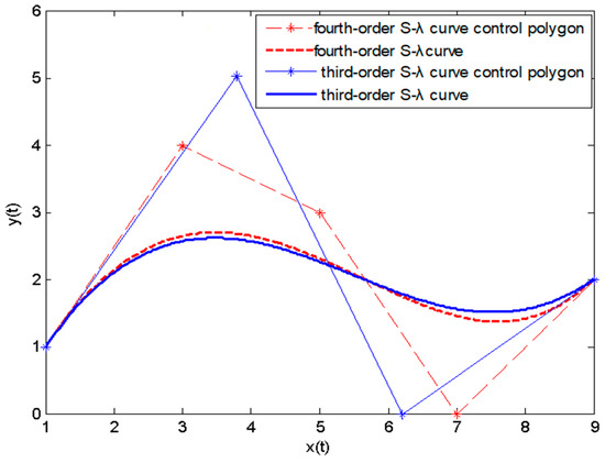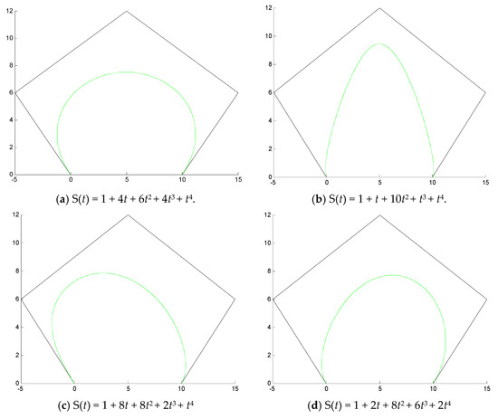 Suppose thatandwhereand. The corresponding S-λ curve is. Figure 2 shows the curves C(t) with different generating functions S(t). From Figure 2, we can see clearly that if the j-th coefficient Aj of the generating functions is even bigger, then the corresponding S-λ curve is even closer to the control point Vj [15].