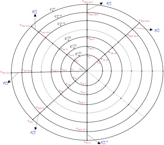 The labels of the vertices of the inner most circle to the circle are given by , the labels of the vertices of the outer circle are given by and the labels of the vertices of the circles are given by .
