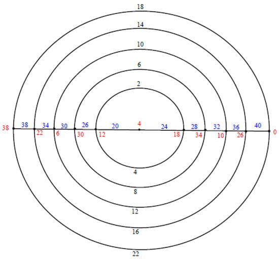 Illustration. The edge even graceful labeling of the polar grid graphs is shown in Figure 10. Theorem 4. If and are odd positive integers greater than . Then the polar grid graph is an edge even graceful graph.