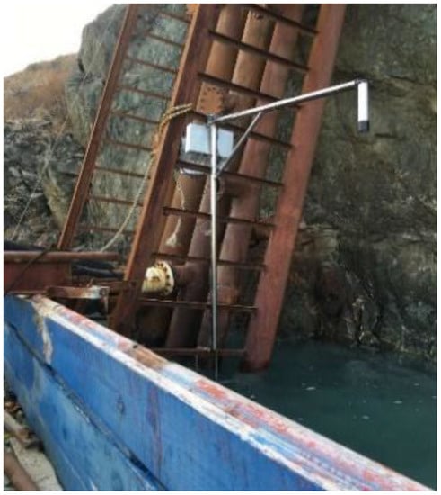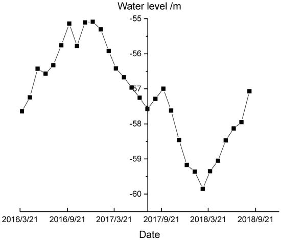 The open pit is used as a tailings pond. A large number of tailings was stored, and the water used to move the tailing accumulated in the open tailings pit, causing the reservoir water level to rise. At the same time, the clarified water was used as the water source of the concentrator. Therefore, the water level of the tailings pond changes cyclically varies during a certain time period. In order to observe the rise and fall of the water level, a sonic water level detector was set (Figure 1).