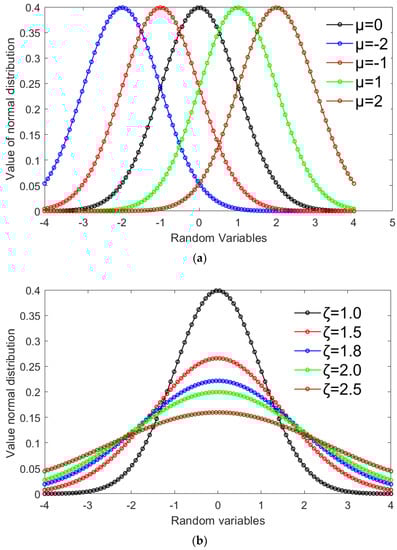 Normal distribution curves have absolute symmetry (Figure 6). The affects the position of the axis, and is called the mathematical expectation, indicating the peak of the symmetric normal distribution. The axis of symmetry is and a change in does not change the shape of the curve. The parameter is the variance, which mainly affects the fatness and thinness of the symmetric normal distribution curves.
