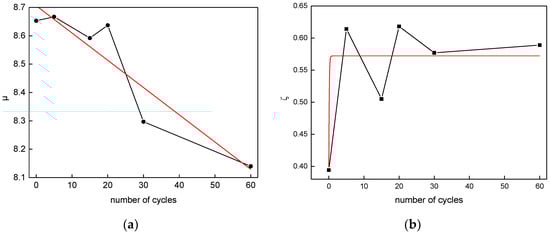 This paper presents the hydraulic damage variable using an elastic modulus. The elastic modulus of samples under various dry-wet cycles decreased with an increasing number of cycles. Meanwhile, the damage variable was defined by elastic modulus []. The was defined as Equation (1).