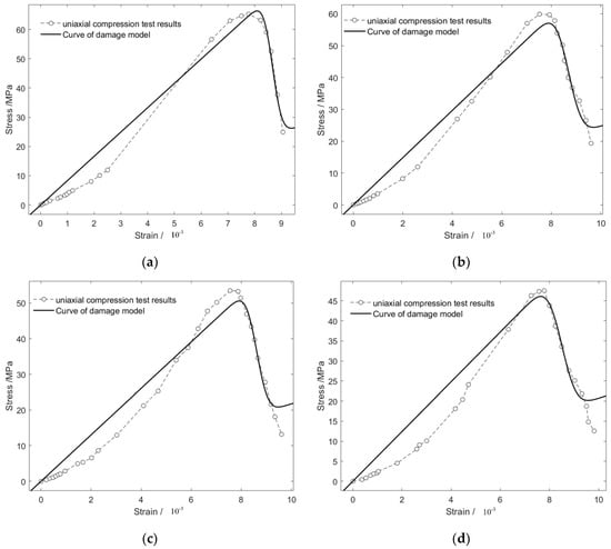 The damage constitutive model and test results are compared, and the results are shown in Figure 8.