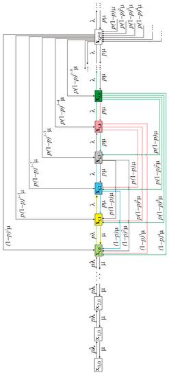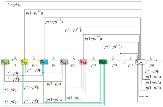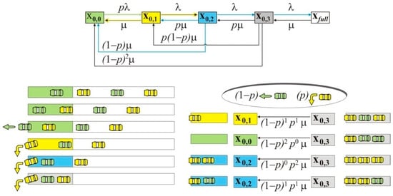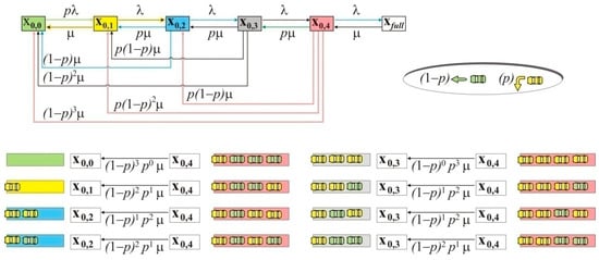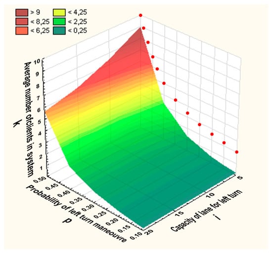 p” (emphasized by red dots). The average number of vehicles has been calculated according to expressions (47)–(49). From