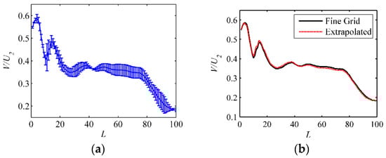 The fine grid convergence index and the extrapolated value of the present simulation results are shown in Figure 7.