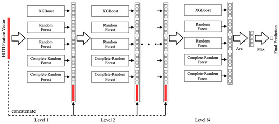 The input feature value HDTI is a -dimensional feature value. And when feed into the first layer, each estimator outputs the initial classification result, which is a -dimensional vector. The results in first layer would produce a -dimensional feature value, then we concatenate the -dimensional feature value and the -dimensional input feature value to form a -dimensional augmented feature value. And the -dimensional augmented feature value will be used as the input feature value for the second layer, similar training procedure will be processed until there is no significant performance gain. Therefore the number of the layer could be automatically chosen, which enhances the adaptivity of the model, making it applicable to different scales of data and deploy at any node in the network in big data environment.