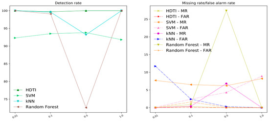 The result of our experiment consists of two parts, the first part is DRDoS attack detection between these methods, and the second part demonstrates the DRDoS attack elimination rate of our proposed method. We will discuss the experimental results at the end of each part.