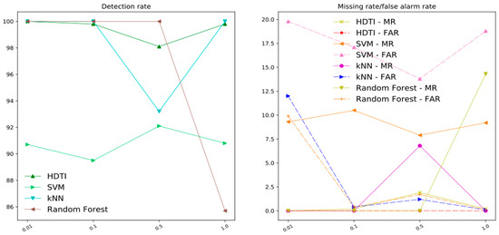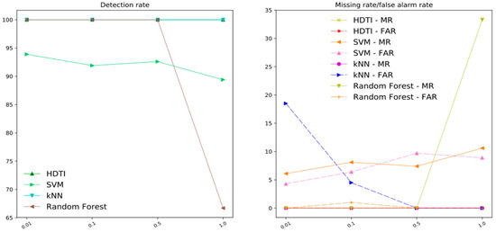 DRDoS Attack Detection Comparison. We conduct various experiments and the representative results are gathered and illustrated in Figure 5, Figure 6 and Figure 7 for comparison. The rest of the results are shown in Table 1, Table 2, Table 3, Table 4, Table 5 and Table 6.