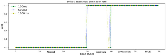 DRDoS Attack Defense Comparison. The experiment results of our DRDoS attack defense method could be evaluated by the attack elimination rate, we conduct the experiment with , and the results are illustrated in Figure 8 and Figure 9, where the and were set.