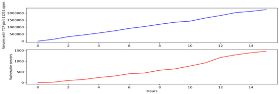 - We scan over literally the whole IPv4 address space for finding servers with TCP port 11211 opens, which is the default port of memcached service. This takes more than 15 hours on our machine. And we discovered more than 2 million servers opens TCP port 11211.